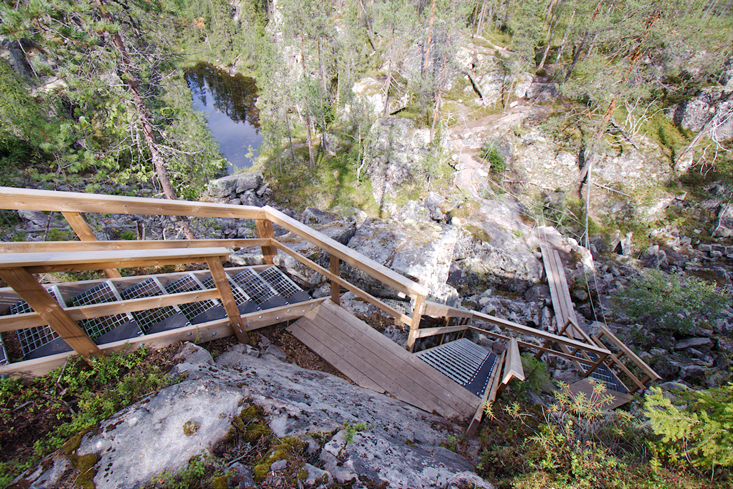 - Maisemat rotkon reunaa seurailevalta polulta alas rotkoon